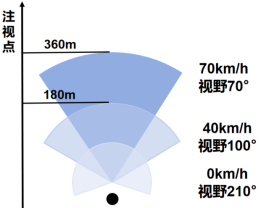 ▲行驶速度与视野、注视点关系(图源:公安部道路交通安全研究中心)