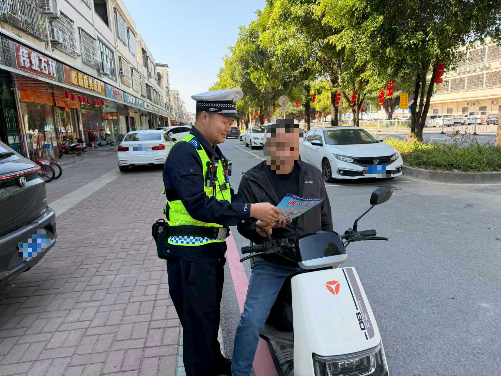 惠东大队采取“定点检查+流动巡逻”双管齐下的模式,对涉牌涉证、非法改装、不戴安全头盔、闯红灯、逆行、违法载人等突出违法行为进行严查严管。在严格执法的同时,执勤民警还“见缝插针”讲安全——剖析典型事故案例,逐条解读交通法规,用身边事警示身边人,让“早点走、靠右行、慢慢开”成为“电摩”骑乘人员听得进、记得住的口头禅。