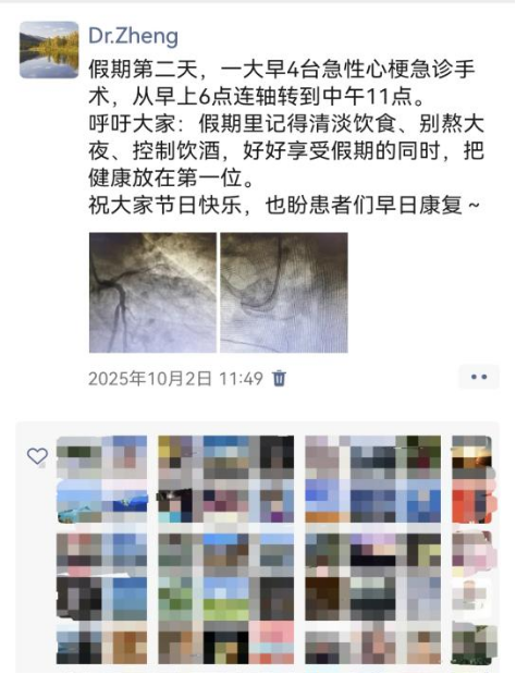 “假期第二天,一大早4台急性心梗急诊手术,从早晨6点连轴转到中午11点。呼吁大家,假期里记得清淡饮食,别熬夜,控制饮酒,好好享受假期的同时,把健康放在第一位……”10月2日中午配资专业炒股配资网站,浙江省人民医院心内科副主任郑浩主任医师发了这样一条朋友圈。