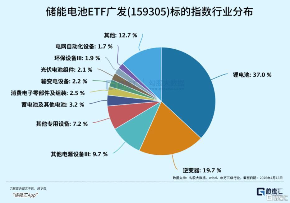 储能电池ETF广发(159305)跟踪国证新能源电池指数,覆盖储能产业链上中下游,囊括锂电池、逆变器、电源设备、输变电设备、光伏电池组件等细分领域,专注储能电池产业链,权重股包括宁德时代、亿纬锂能、阳光电源、英维克、德业股份等龙头公司。