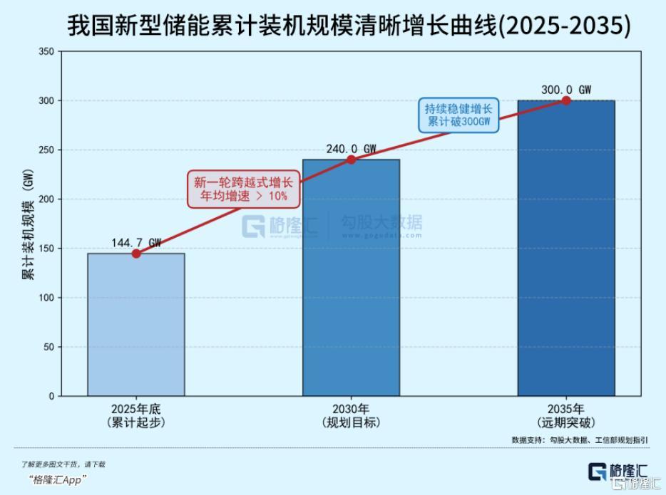 在这种顶层设计下,行业的装机天花板与市场规模预期被打开。根据工信部的规划部署,到2030年,新型储能累计装机规模预计将达到240GW,2035年更有望突破300GW 。这意味着在未来五年内,行业年均复合增速将稳定在10%以上 。