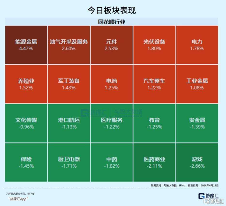 盘面上,猪肉概念股强势反弹,半导体、电池等板块走强,玻璃纤维、能源金属、光伏设备等板块涨幅居前;而海运、保险等板块跌幅居前。